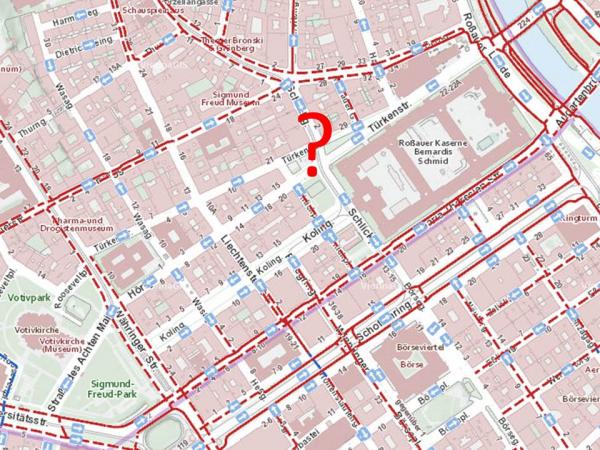 Problem: vom 1. Bezirk kommend gibt es derzeit keine Radverbindung über den Schlickplatz zur Porzellangasse. Somit besteht eine Lücke im Radverkehrsnetz zwischen Lände und Währingerstraße.